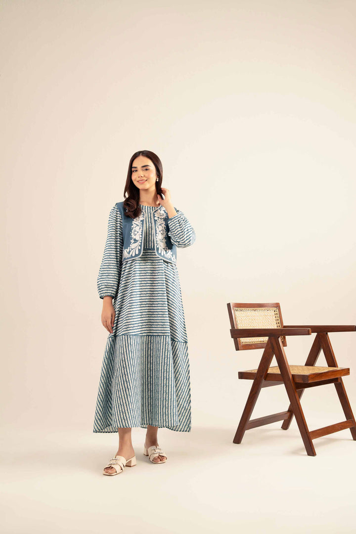 Round Neckline, Yoke And Gathered Sleeves, Long Flared Dress