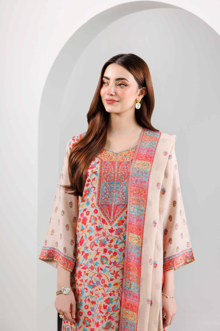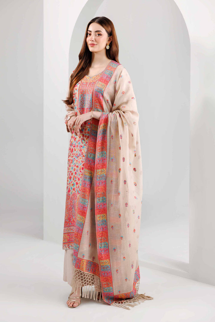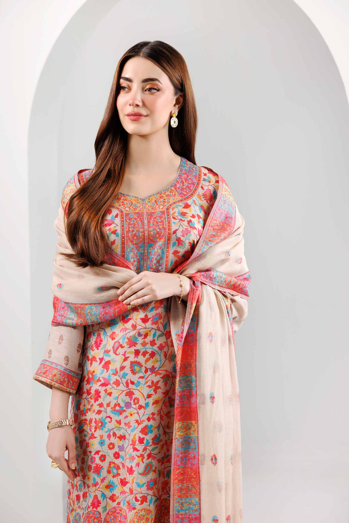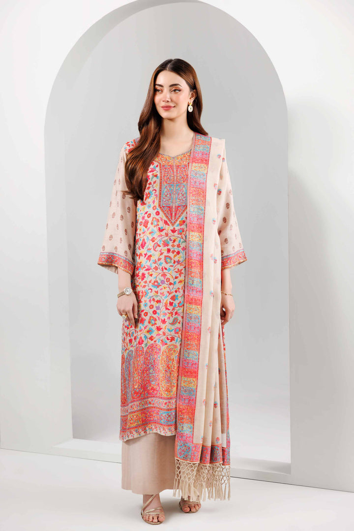 Effortlessly capture hearts with our embroidered three-piece suit from the latest rawayat winter collection.