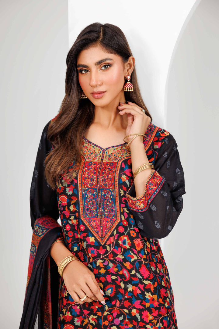 Effortlessly capture hearts with our embroidered three-piece suit from the latest rawayat winter collection.