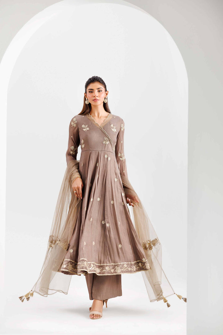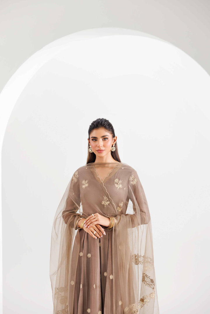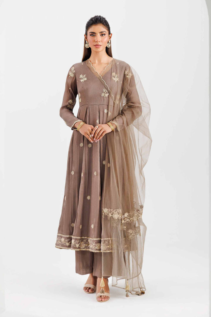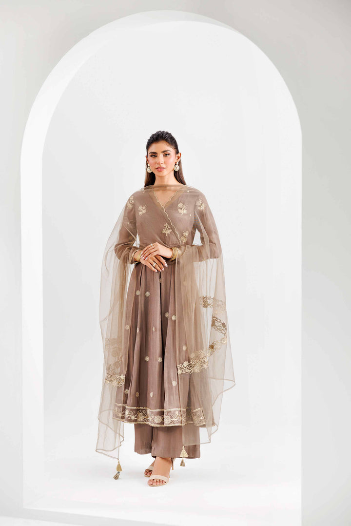 Effortlessly capture hearts with our embroidered three-piece suit from the latest Noori Winter Collection, featuring intricate detailing and timeless elegance for a graceful look.