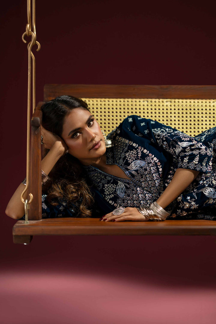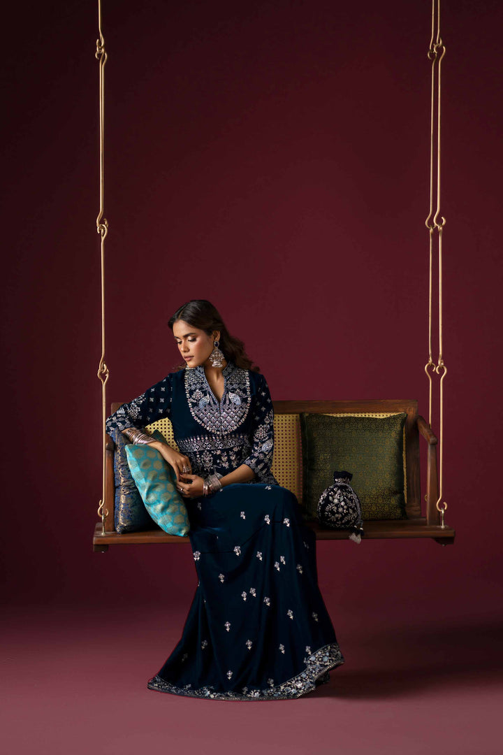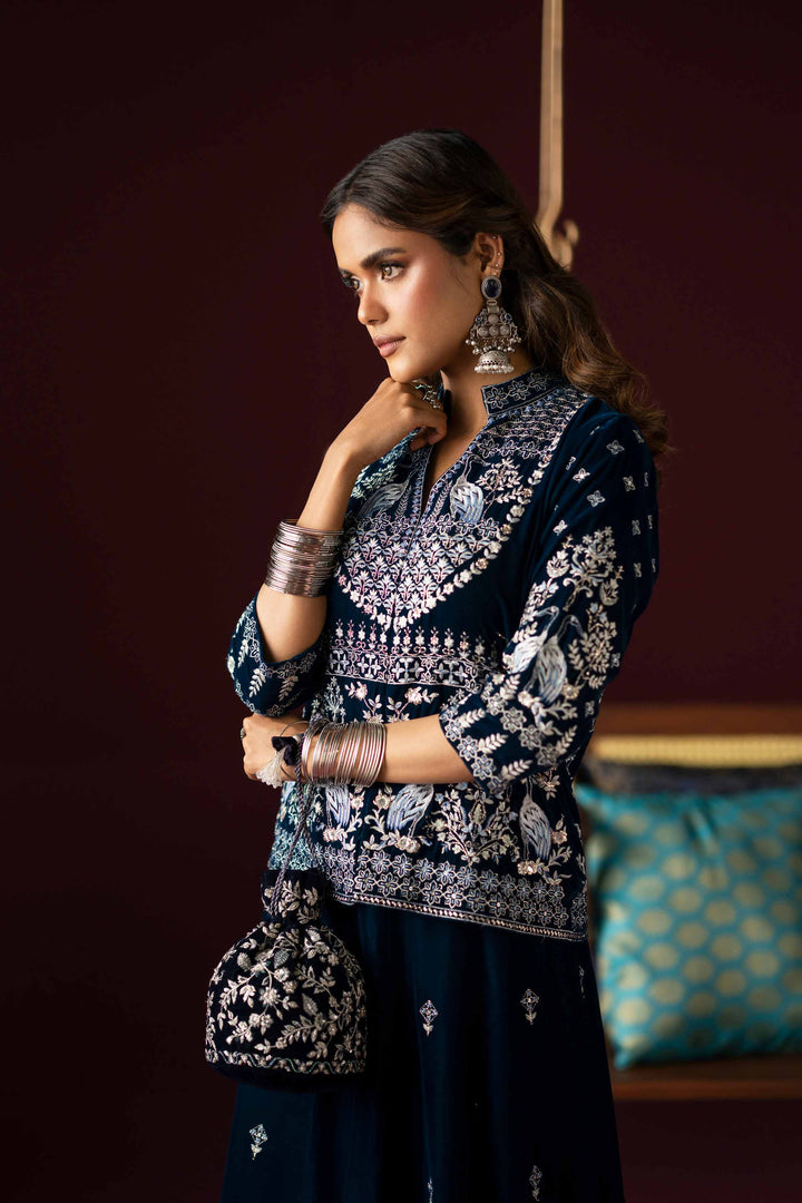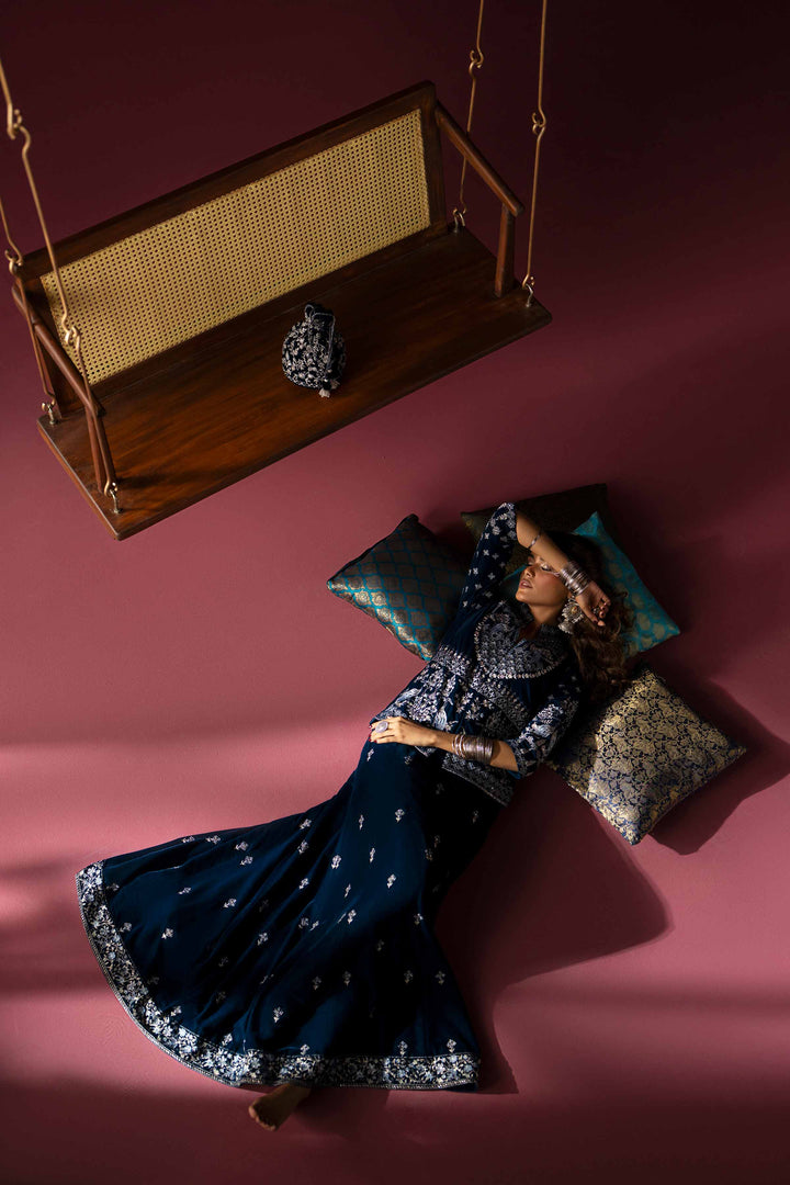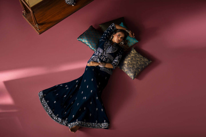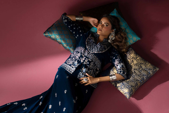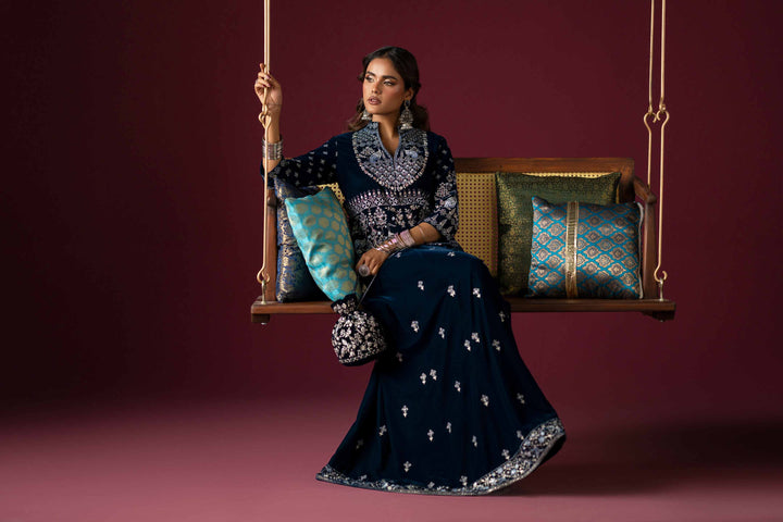 Effortlessly embrace elegance with this embroidered two-piece suit from the latest Deeva Winter Collection, blending style with refinement.