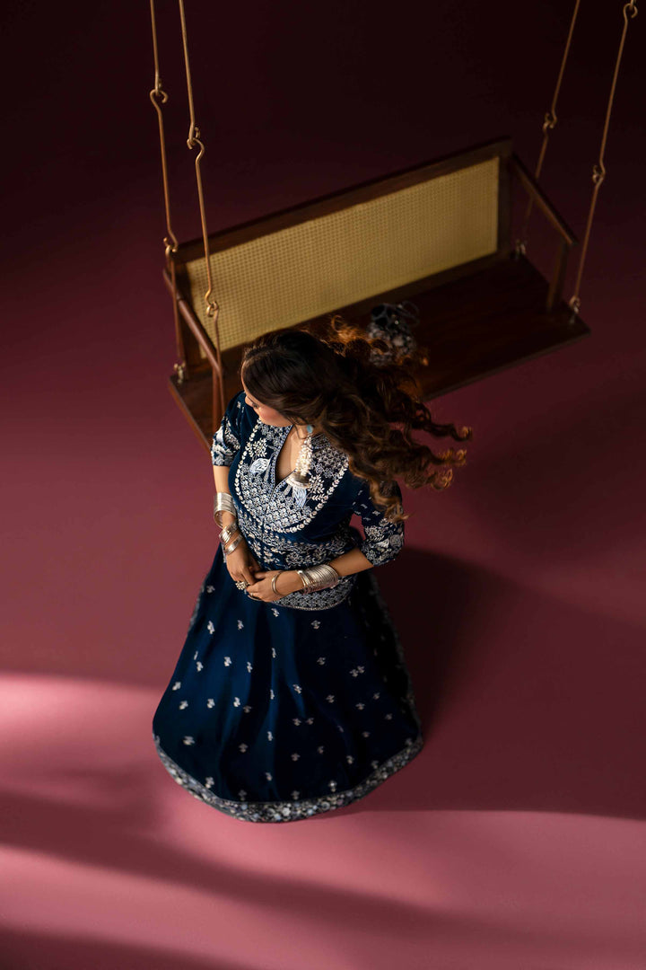 Kalian lehnga featuring a flared border at the bottom and motif chitta detailing on the lehnga.