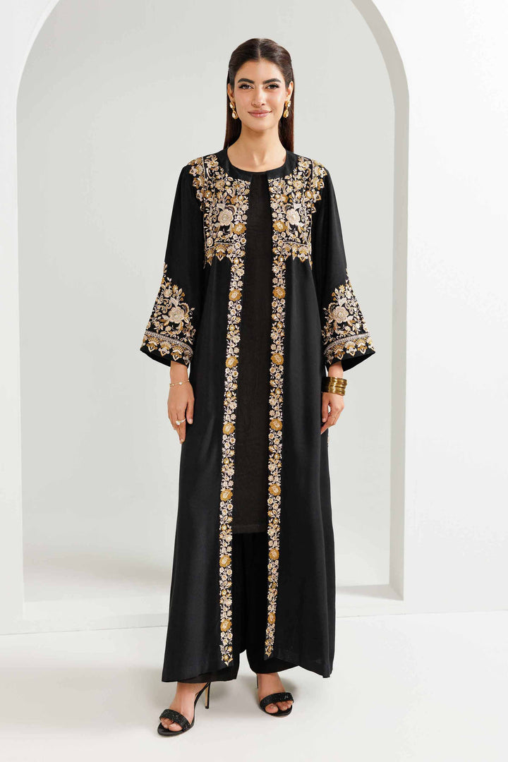 Add refined elegance to your wardrobe with this embroidered three-piece suit from the latest Pashmeena Winter Collection, featuring intricate detailing.