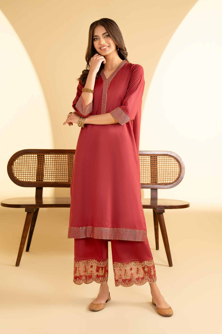 Glance yourself in this attractively embroidered two-piece suit from the latest luxury pret summer collection.