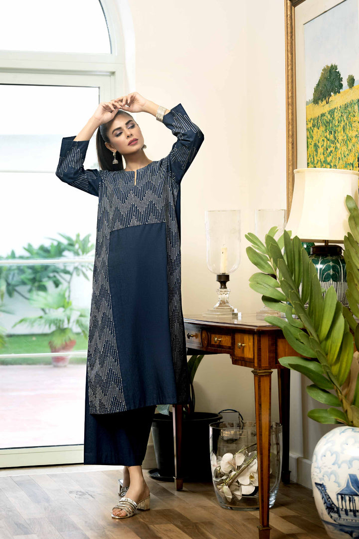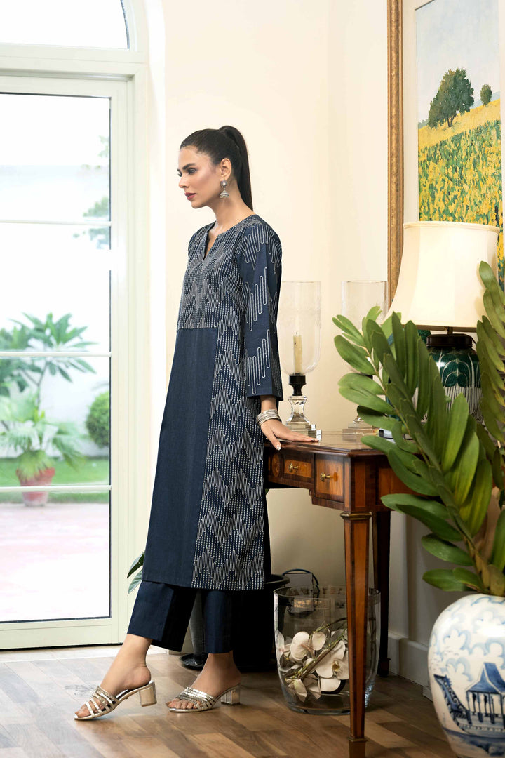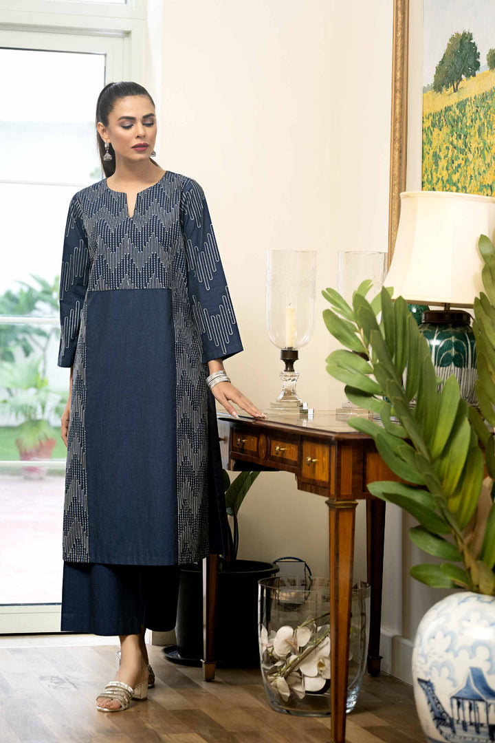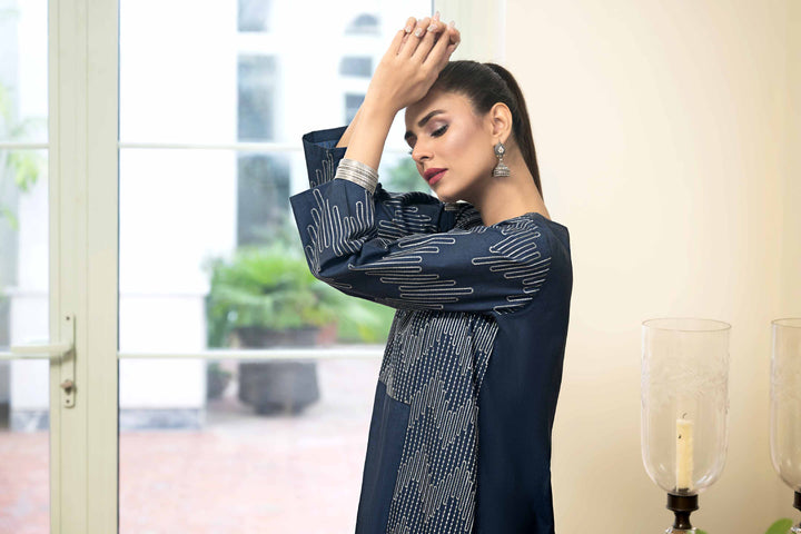 Round Neckline With V Slit, Yoke Detail, Long Embroidered Paneled Shirt