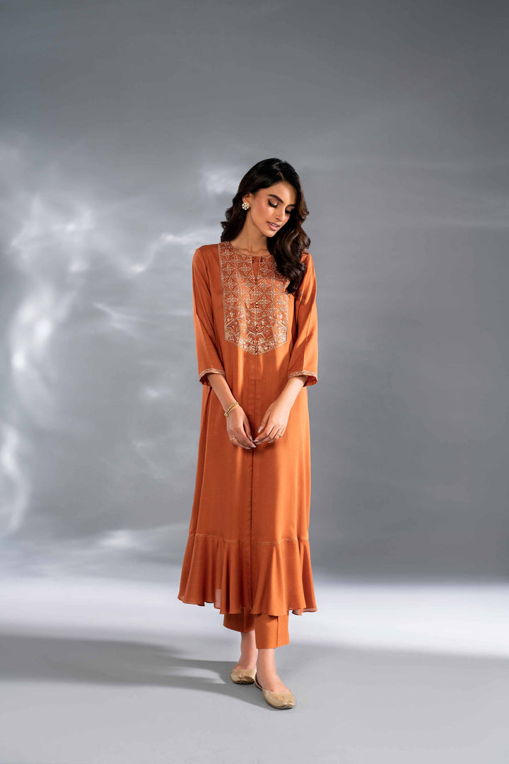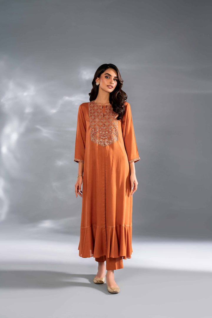 Create gorgeous and magnificent look with this embroidered two-piece suit from the latest luxury pret winter collection.