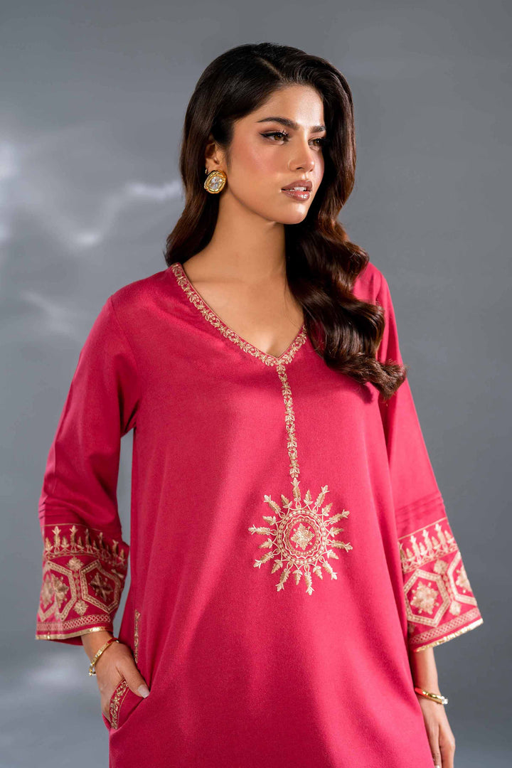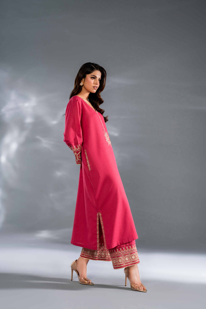 Enhance your seasonal wardrobe with this embroidered two-piece suit from the latest luxury pret winter collection.