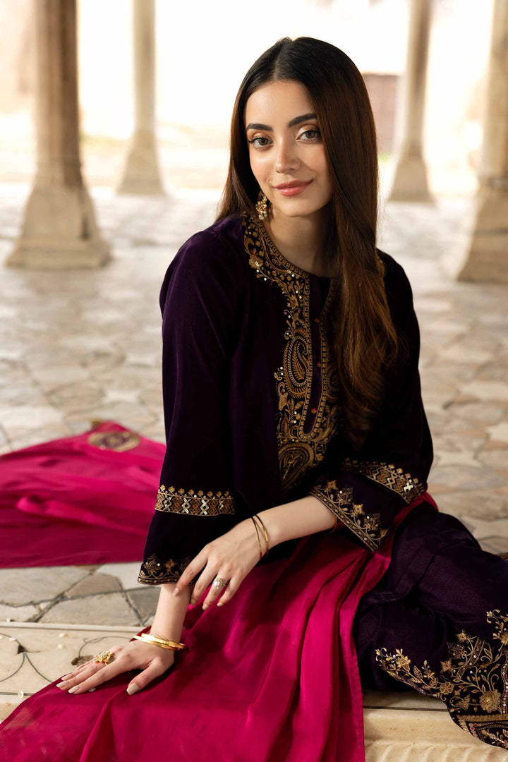 Stand out this Winter in this embroidered three-piece suit from the latest Luxury Pret Winter Collection, designed with intricate craftsmanship and grace.