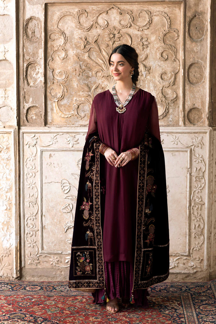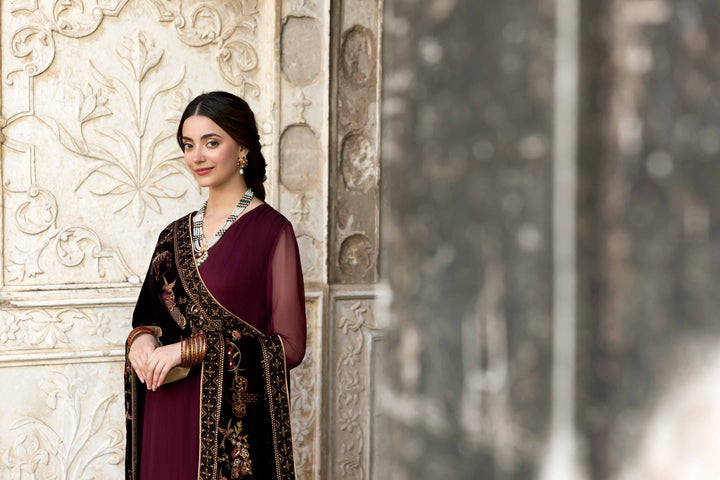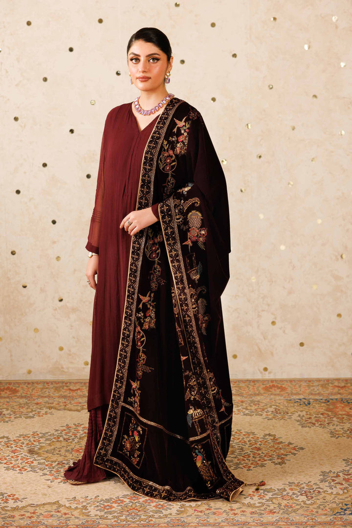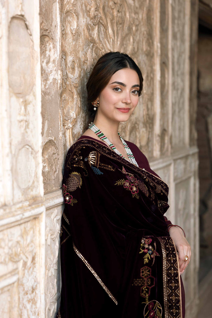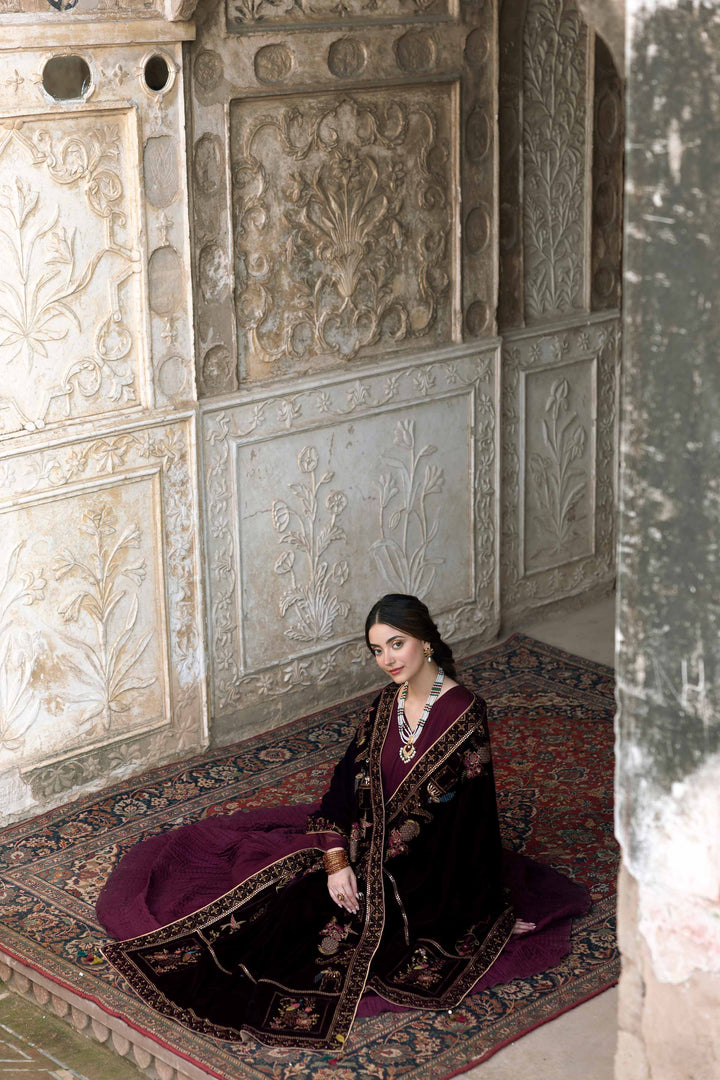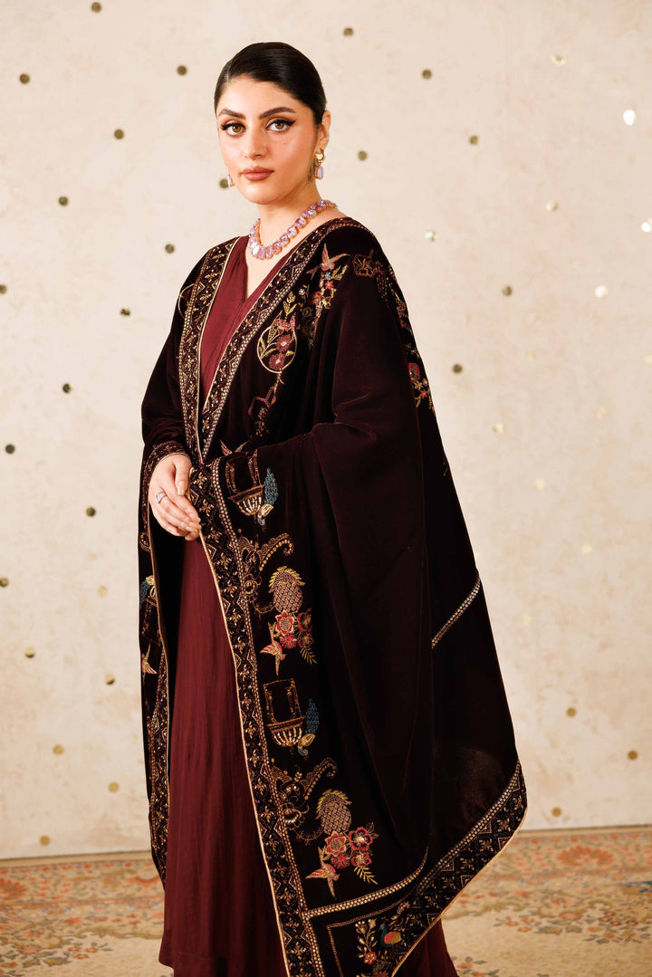 Step into elegance with this embroidered shawl from the Luxury Pret Winter Collection, a perfect accent for any occasion.