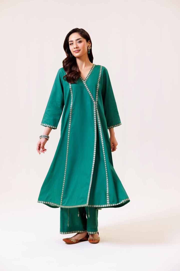 Embroidered Front & Sleeves, Long Wrap Around Around Angrakha Style Shirt