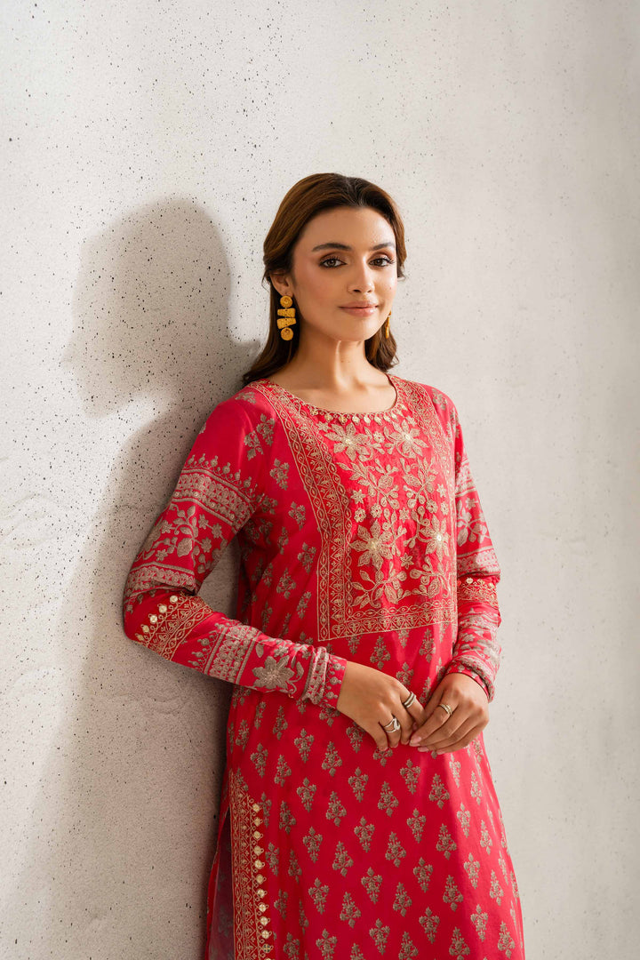 Enhance the value of the entire clothing with this printed embroidered two-piece suit from the latest pret summer COLOR CONTRAST collection.