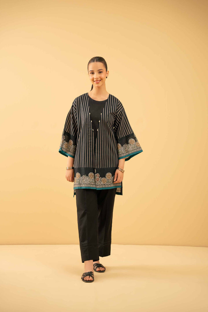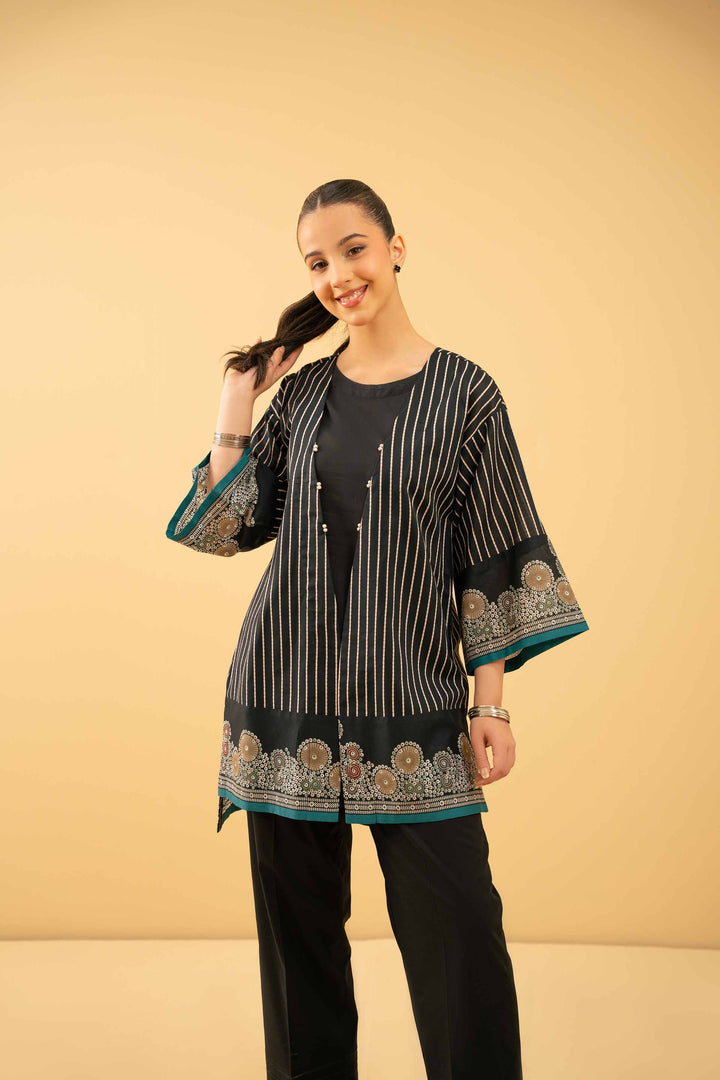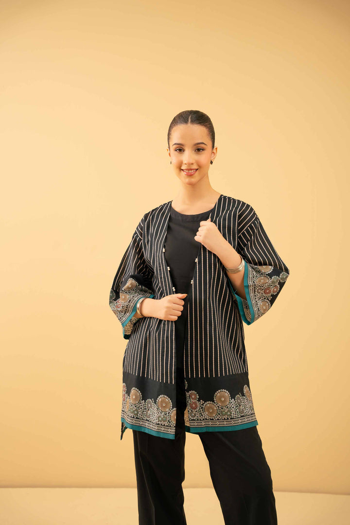 Length Variation Drop Shoulder Jacket with Pearl Detail on Front A Trendy and Elegant Piece to Elevate Your Summer Wardrobe.