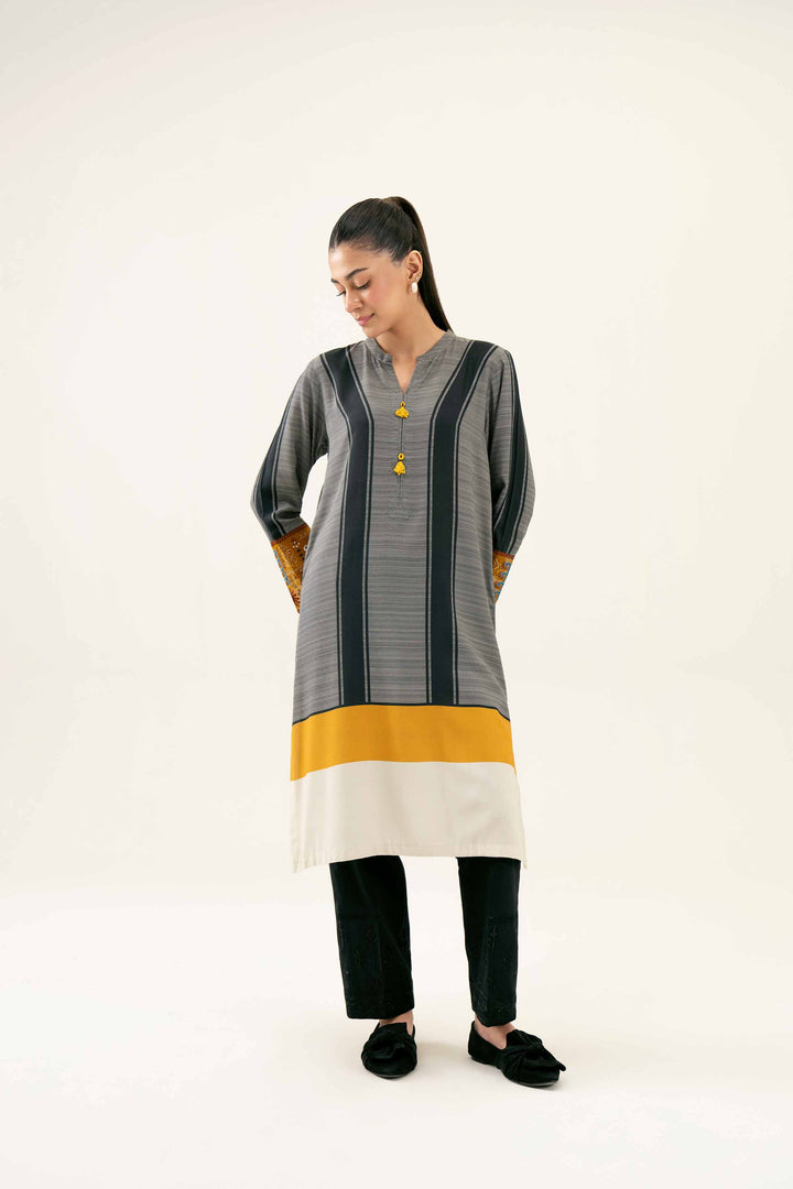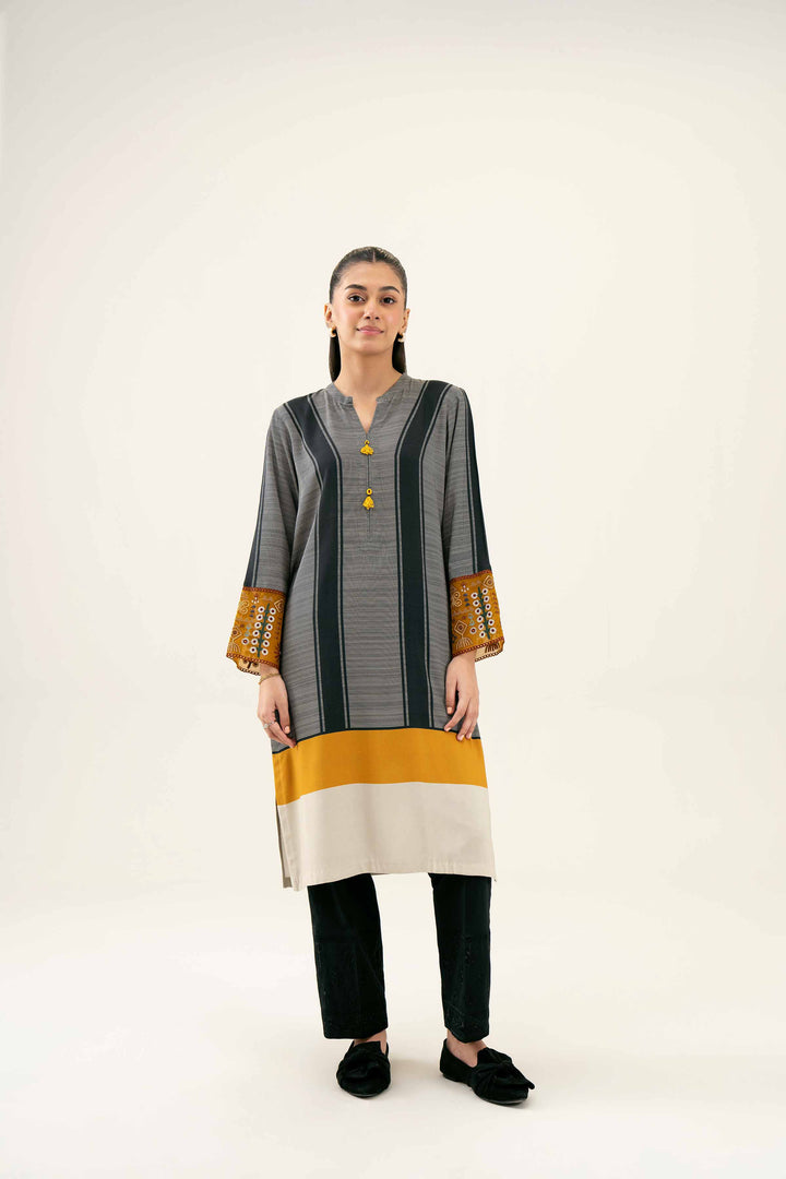 Give your new season look an elegant upgrade by dressing up our printed embroidered shirt from the latest pret winter collection.