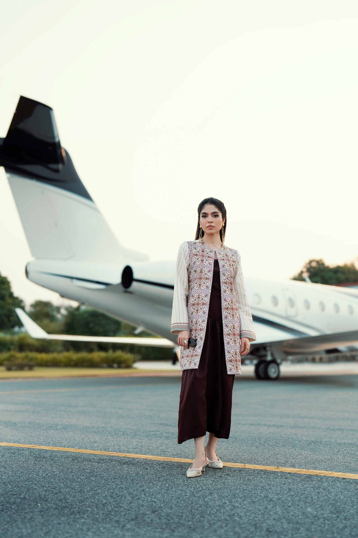 Upgrade your winter fashion game with this embroidered jacket from the latest Pret Winter Collection, blending comfort and elegance.